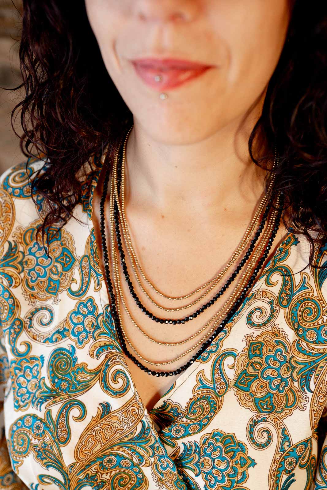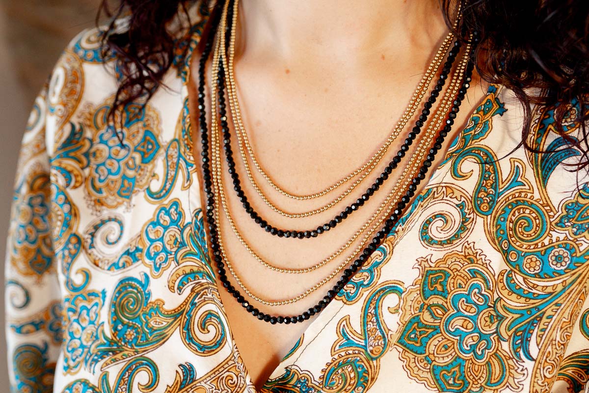 Lagoa es un collar diseñado para quienes buscan piezas artesanales con un acabado limpio y actual. Está elaborado con hilo encerado de alta resistencia, cuentas de cristal negro y detalles en latón, creando una combinación equilibrada entre brillo, durabilidad y estilo.