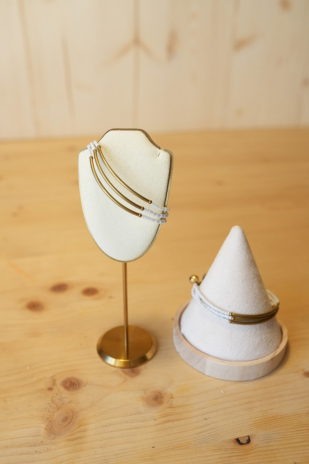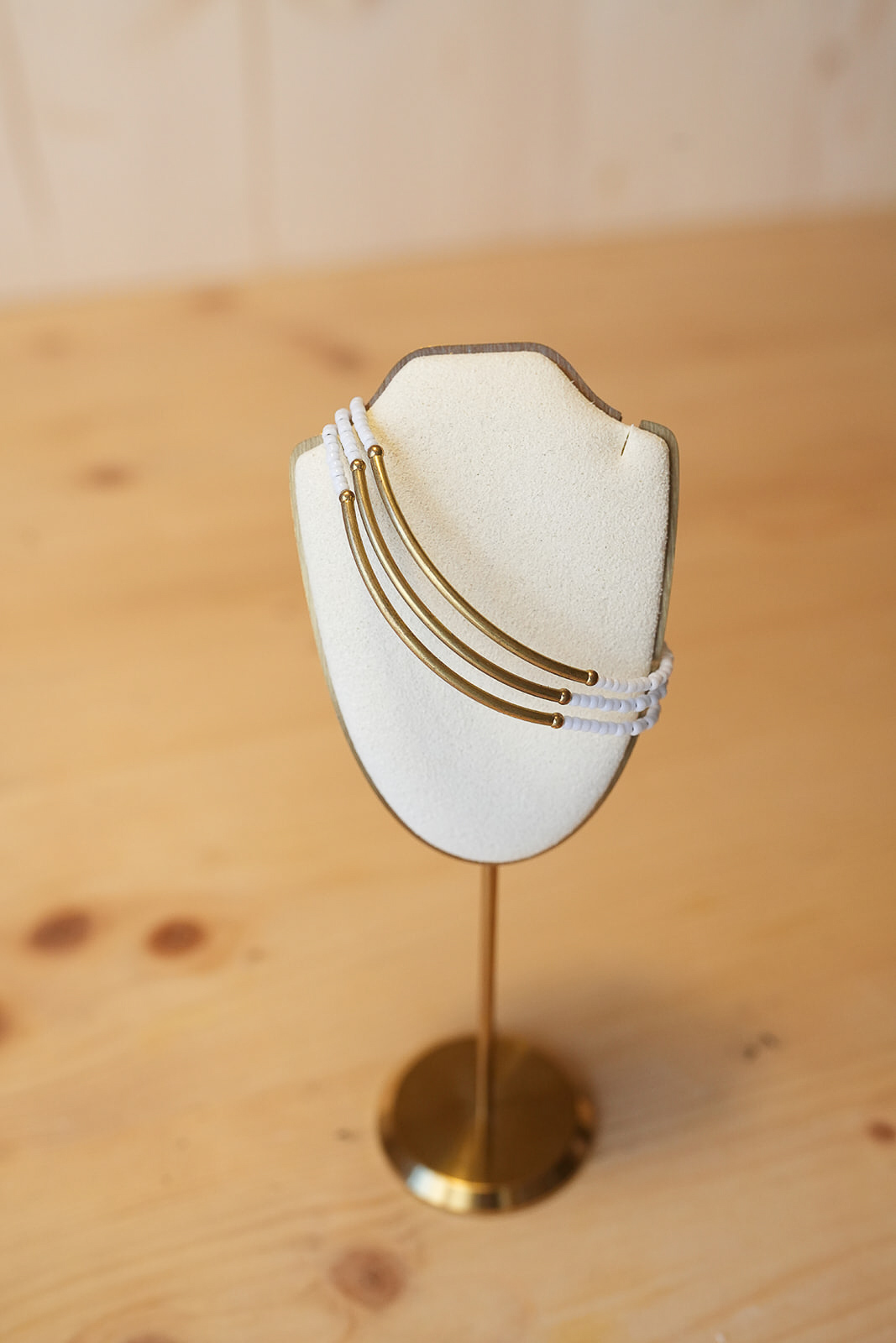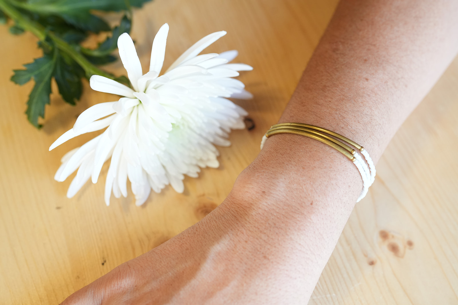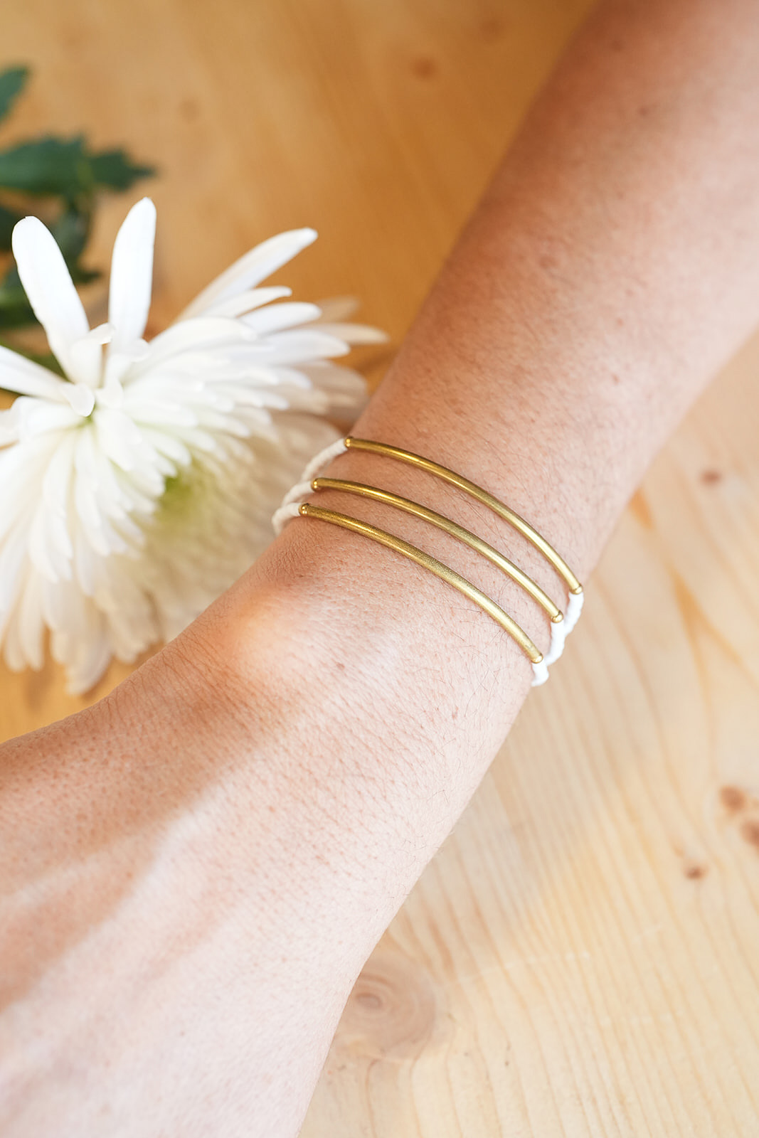 Las tres líneas de mostacilla blanca crean un contraste suave y elegante, perfecto para quienes buscan un accesorio artesanal capaz de integrarse en cualquier estilo sin perder carácter.